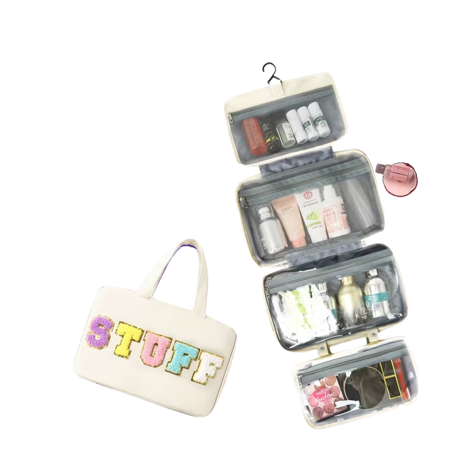 STUFF Hang Around Cosmetic Bag, zipper seal with hanging hook. Perfect for hanging toiletries during travel or for camp!
